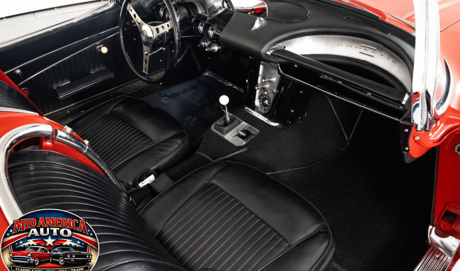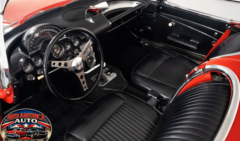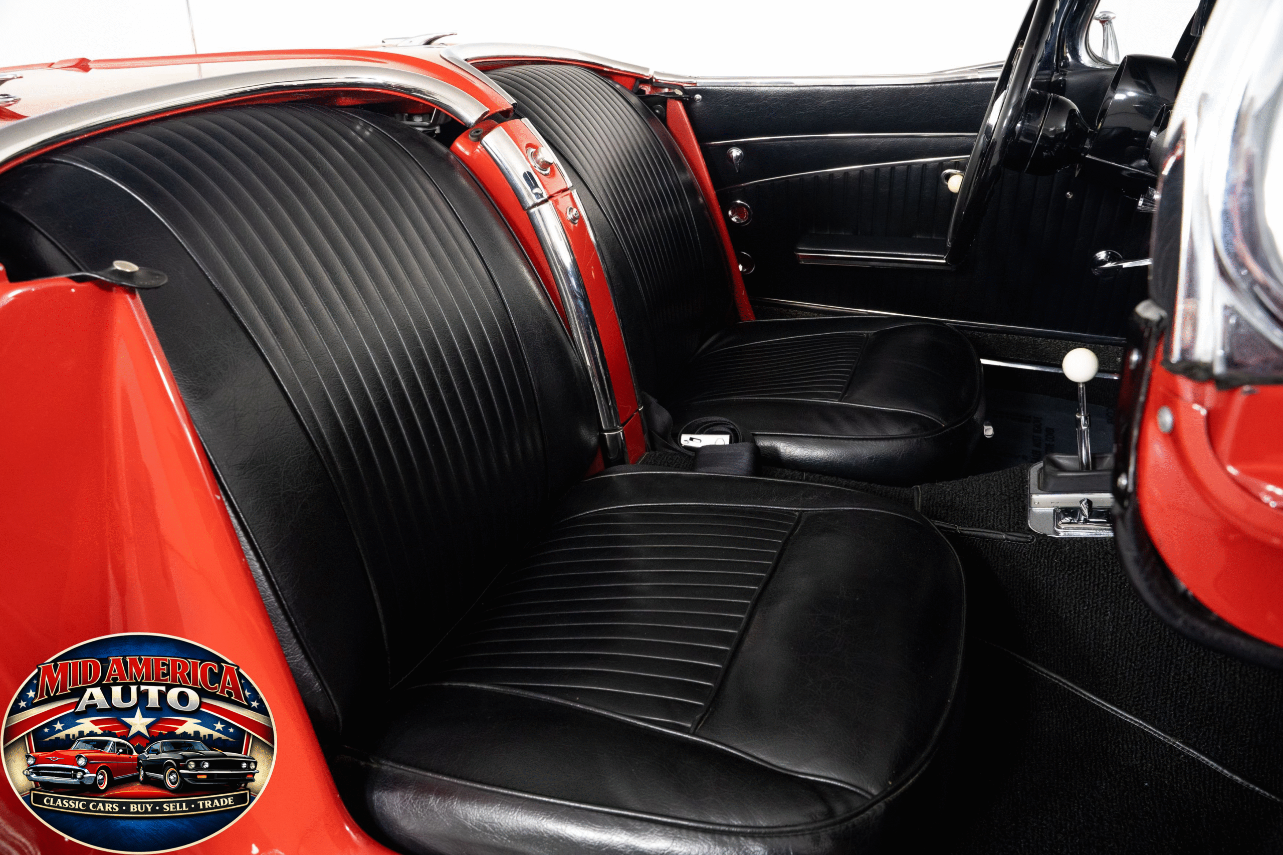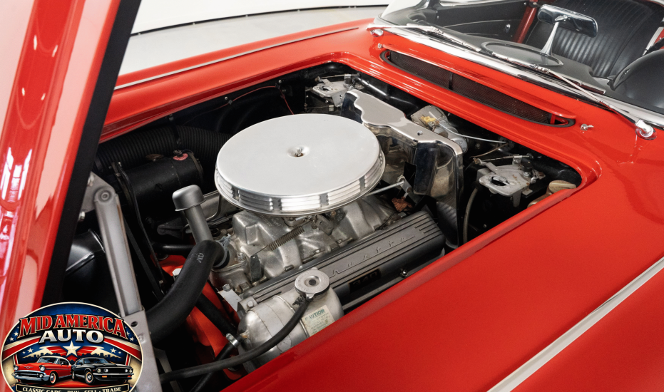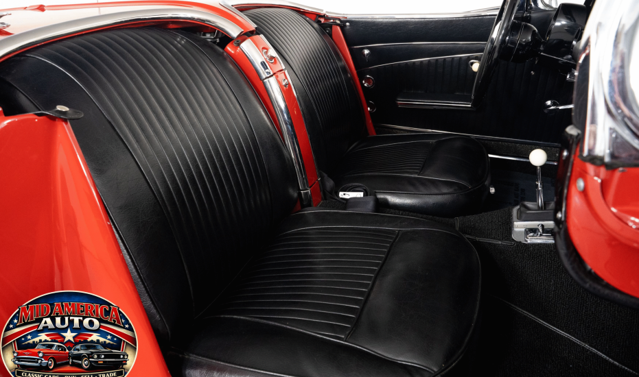 Classic Corvette convertible with a powerful V8 and 4-speed manual transmission. Finished in striking red with black interior, removable hardtop, and period-correct styling. A beautifully restored C1 with timeless appeal and crisp performance.