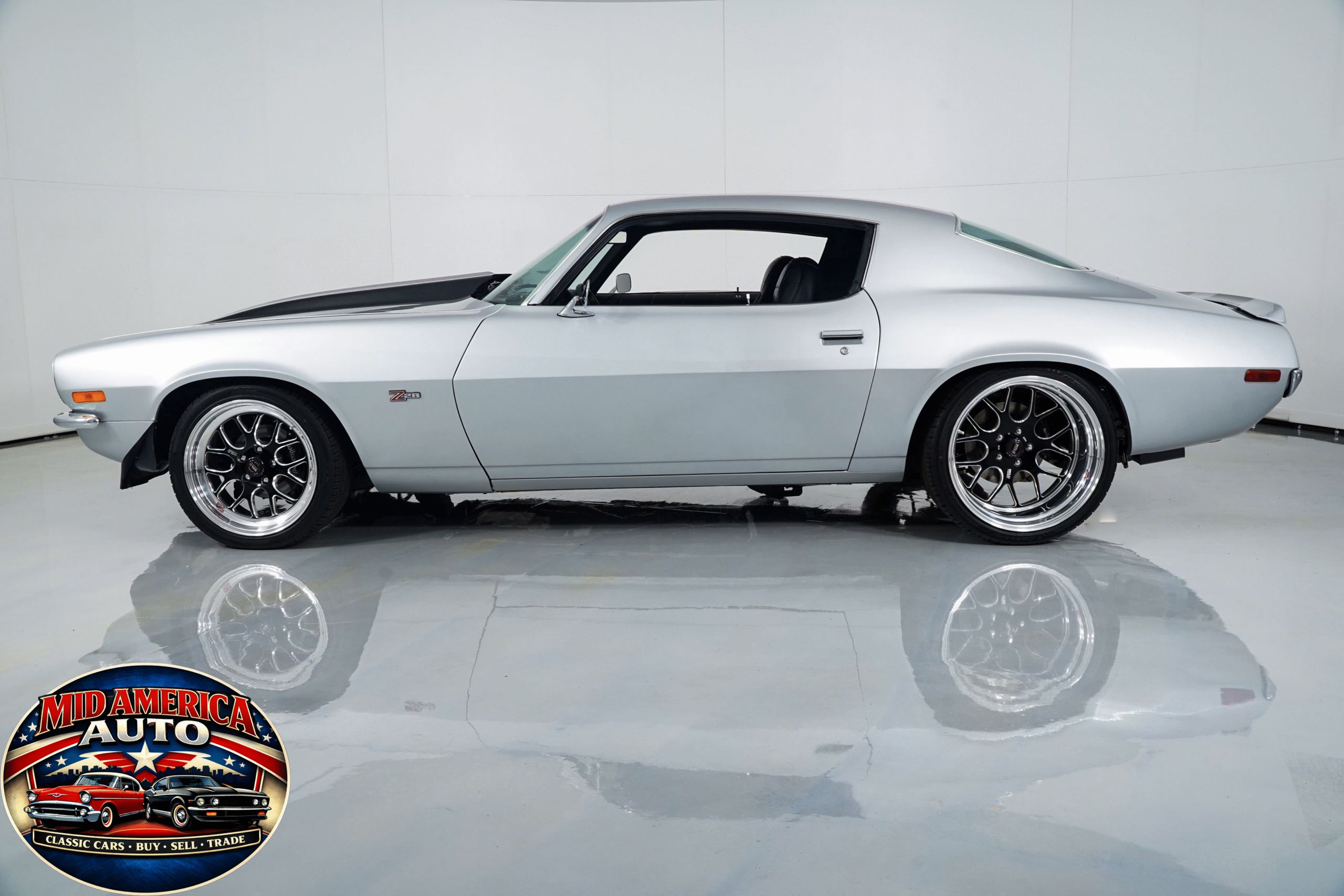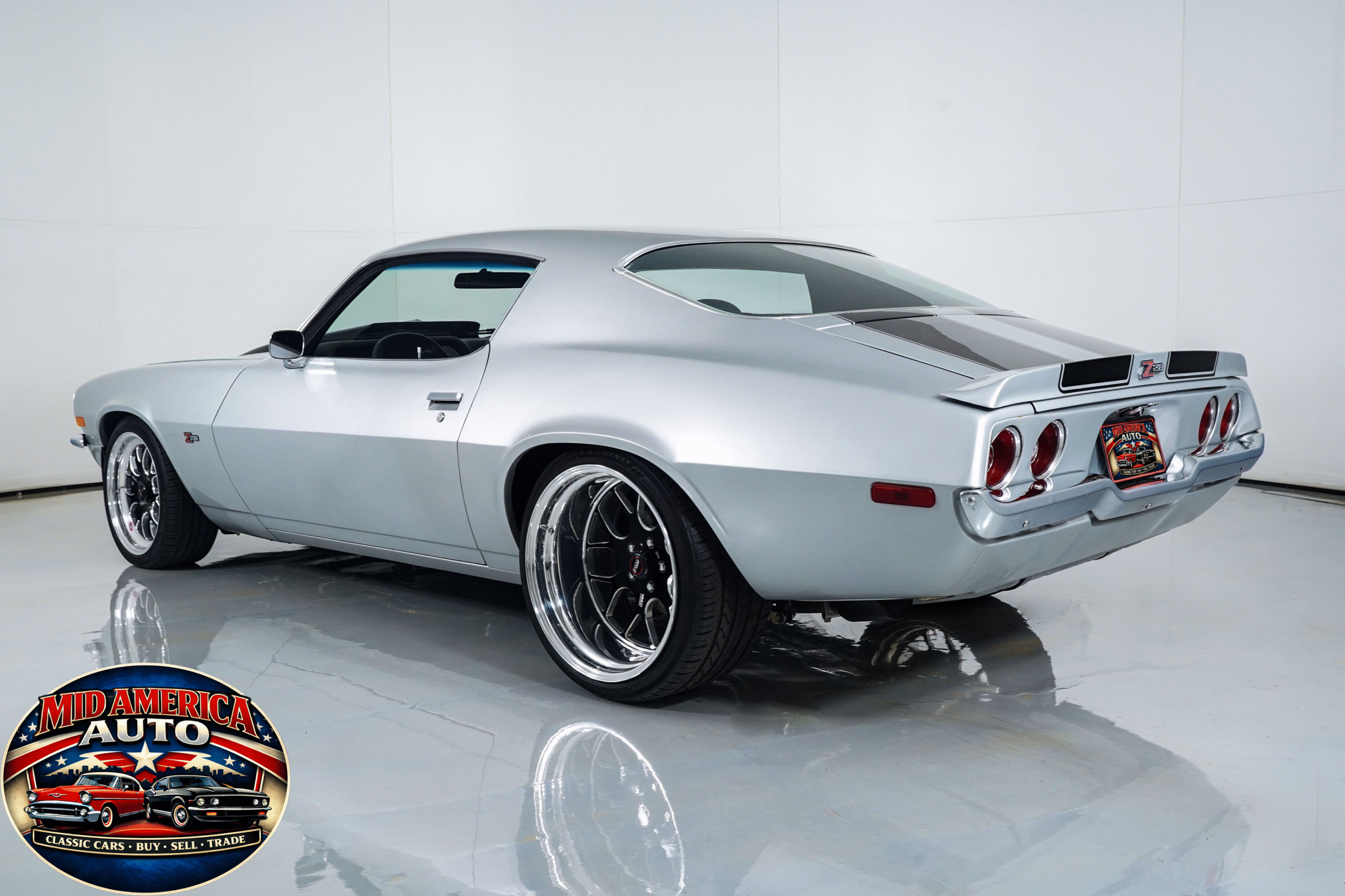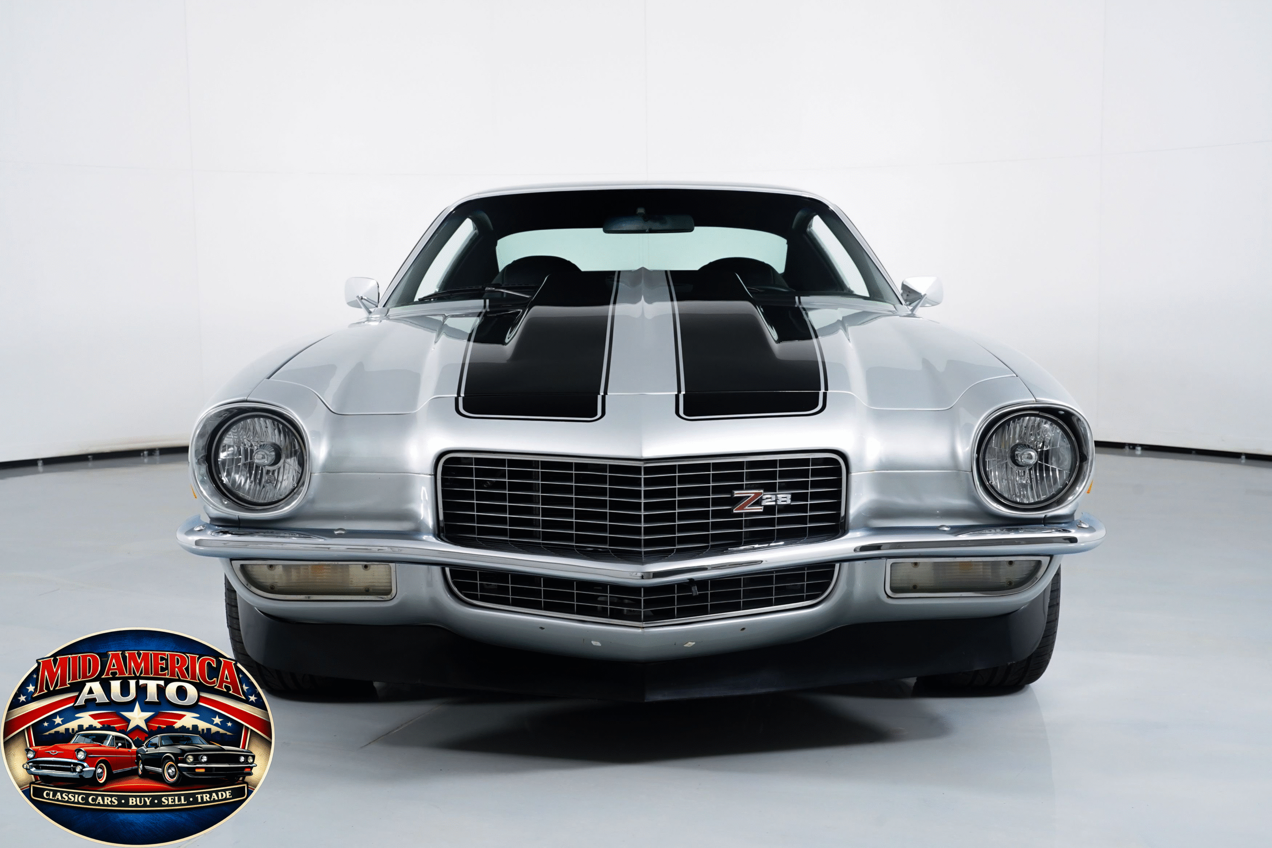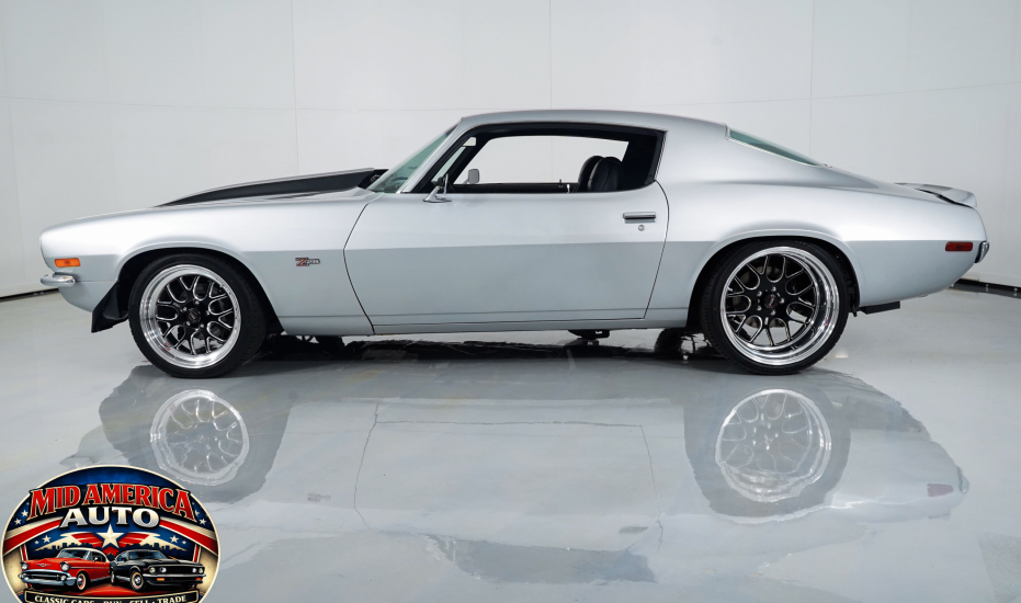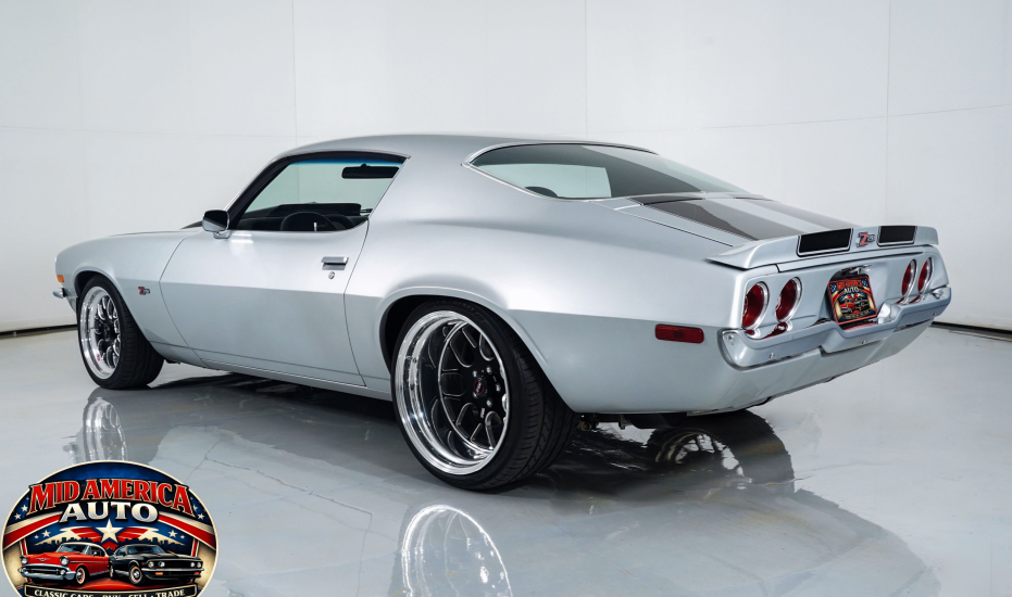 Aggressive restomod finished in silver with black stripes and a supercharged LS2 under the hood. Modern power meets classic style with custom interior, updated suspension, big brakes, and a smooth-shifting automatic. Built for comfort and performance—this Camaro is ready to impress on every level.
