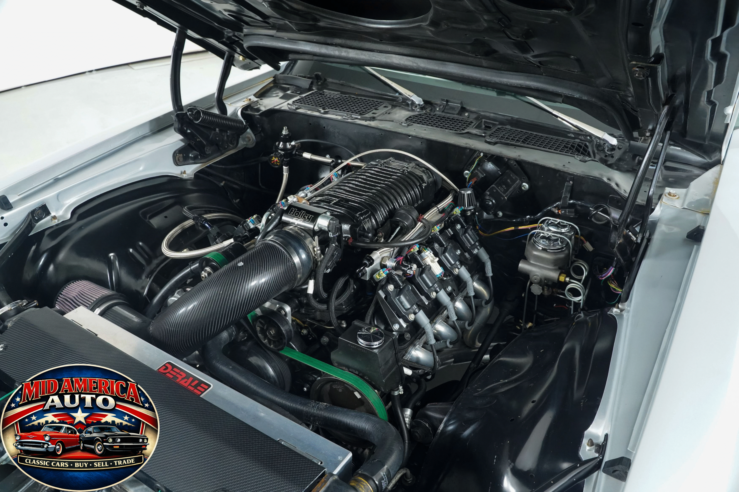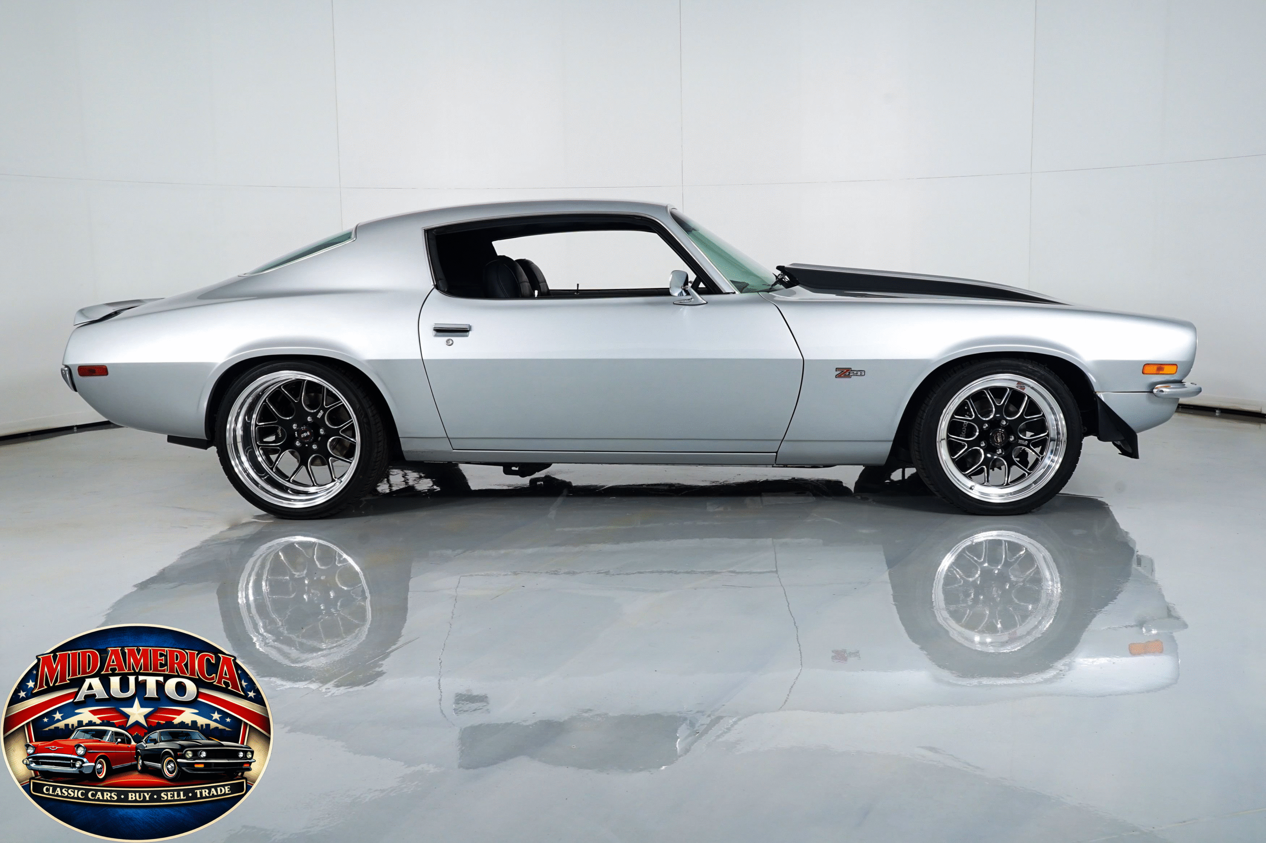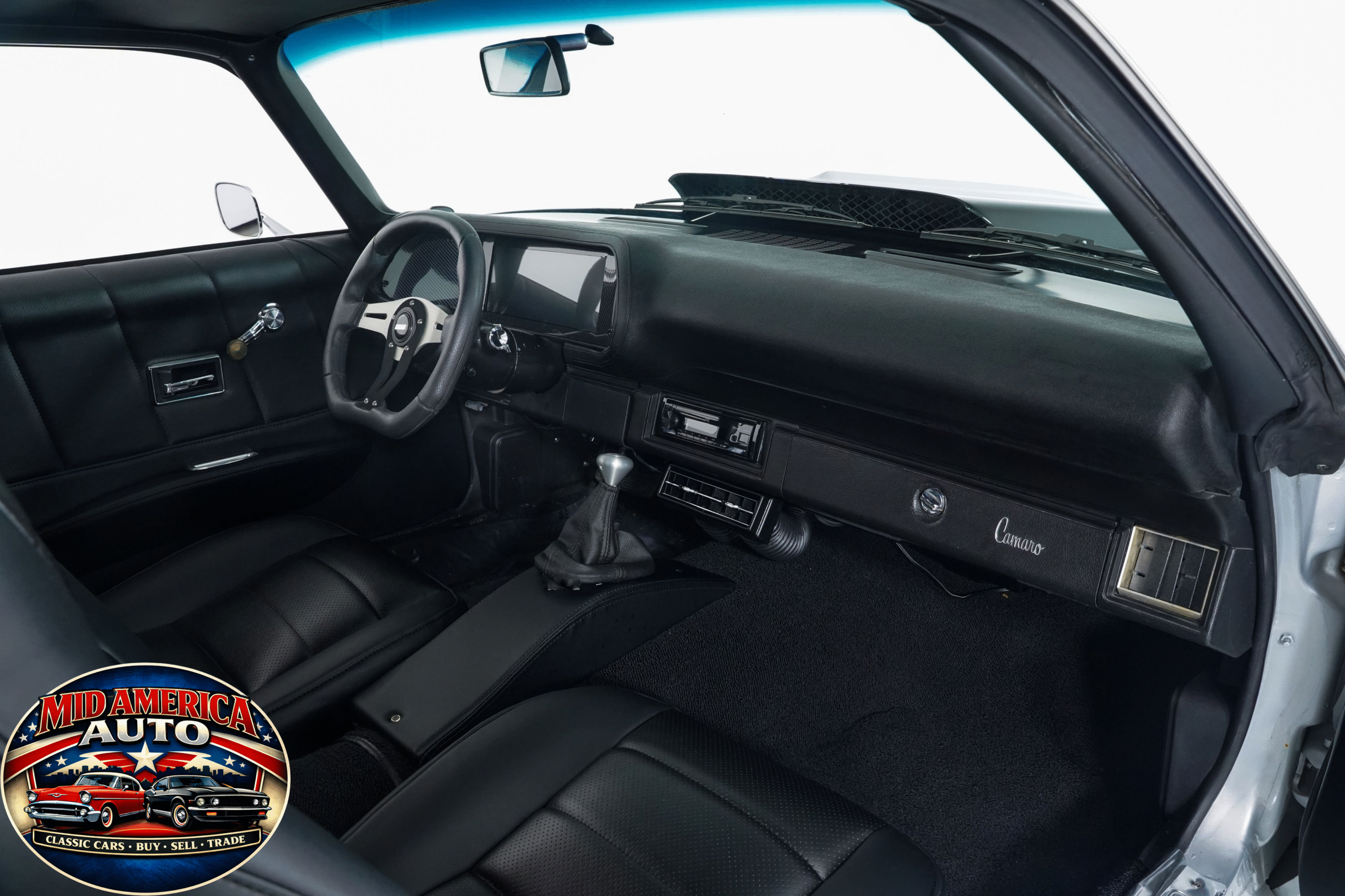 Aggressive restomod finished in silver with black stripes and a supercharged LS2 under the hood. Modern power meets classic style with custom interior, updated suspension, big brakes, and a smooth-shifting automatic. Built for comfort and performance—this Camaro is ready to impress on every level.